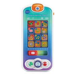 Smartfonik Małego Odkrywcy to zabawka z linii elektronicznych zabawek VTech Baby. Skierowana do dzieci w wieku od 6 do 36 miesięcy. Ten interaktywny smartfon umożliwia zabawę w rozmowy telefoniczne, pomaga w poznawaniu liczb, zwrotów związanych z pogodą oraz piosenek i melodii. Dzięki niemu dziecko będzie mogło bawić się w naśladowanie obsługi prawdziwego telefonu.