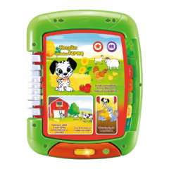 Zabawka edukuje dziecko m.in. w zakresie rozpoznawania emocji, kolorów, kształtów czy zwierząt, pomaga również w nauce liczenia. Zabawka powstała z wysokiej jakości tworzywa. Tablet posiada opcję regulacji głośności oraz został wyposażony w funkcję automatycznego wyłączania, która pozwala przedłużyć żywotność baterii.